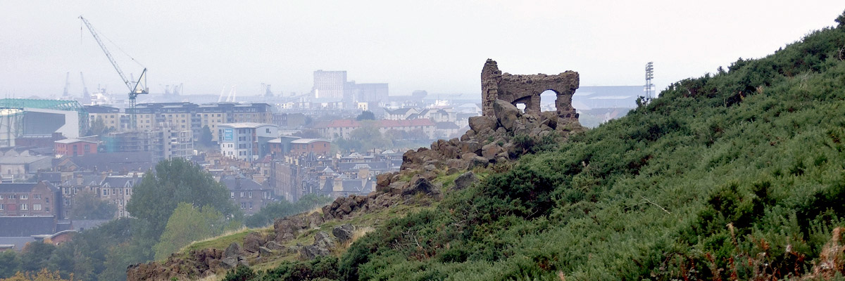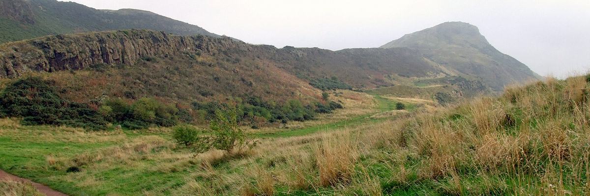 set foot in) on either side of us. We pass these by, instead entering Holyrood Park and ascending to the volcanic knob of Arthur's