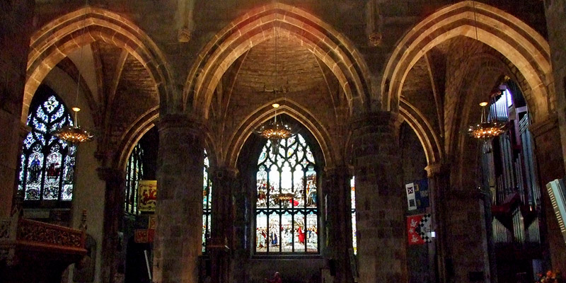 foot in St Giles Cathedral. There has been a church here since the 12th century, at least, but the edifice has gone through an