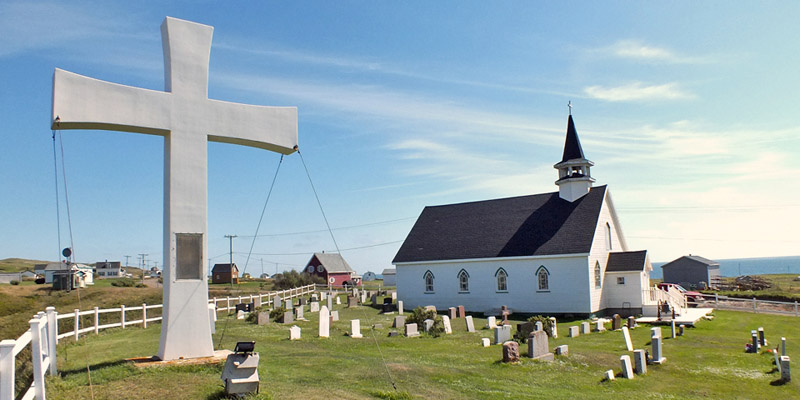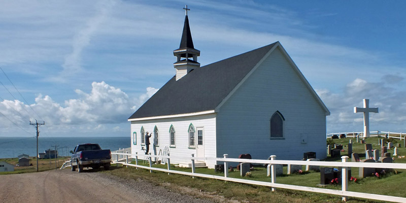 archipelago. Back down, across the fence, I visit the little Anglican church and view the overgrown old burying ground. A fellow with a