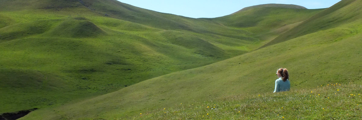 and shortly find myself in the valley beyond Big Hill. Decide to go up the hills on the other side, and conquer Big Hill on the way back.
