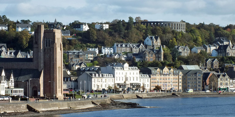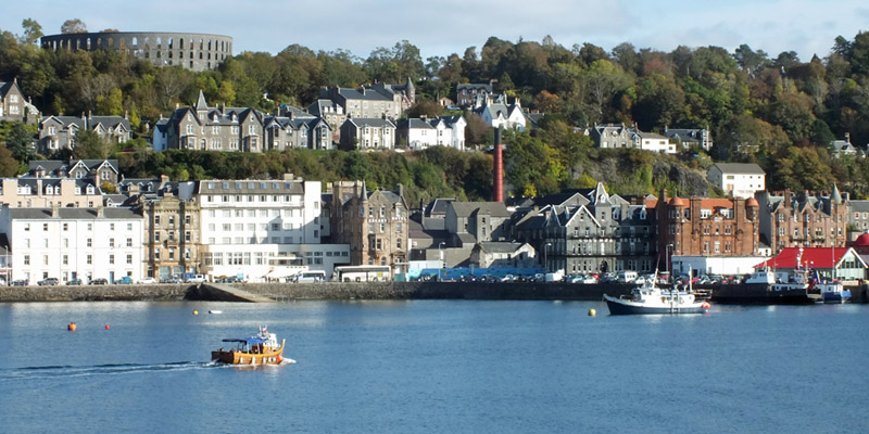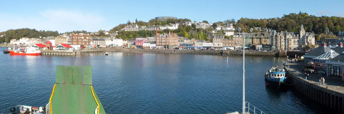 Whatever one thinks of Oban, it shows its best face to the departing traveler aboard the CalMac ferry on a sunny afternoon. We sail out the Sound