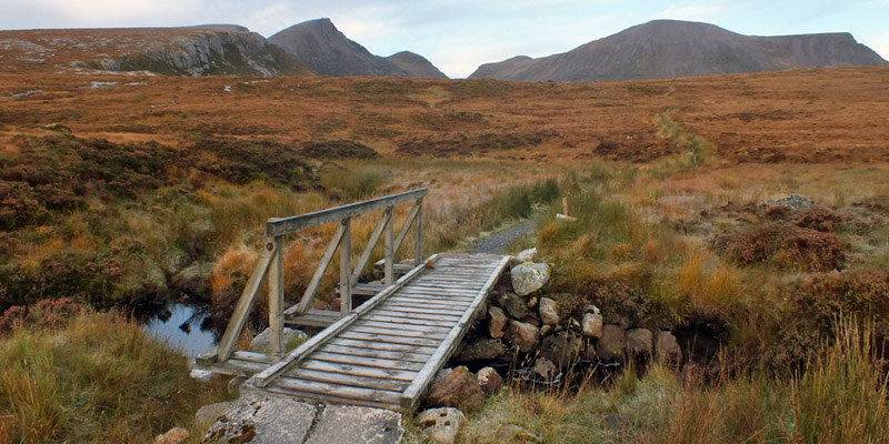 approach to Spidean Còinich, the nearest and lowest peak, appeared to be a straightforward, steady, and fairly smooth ascent. The OS map shows that the