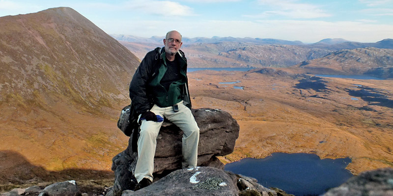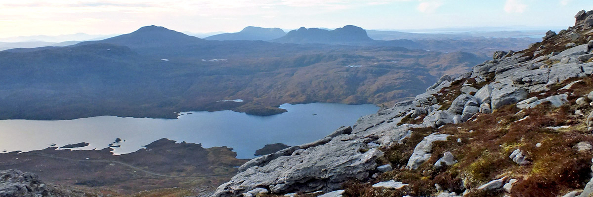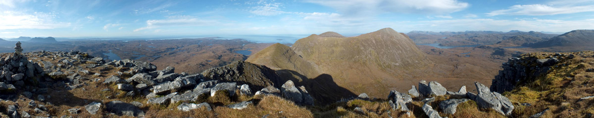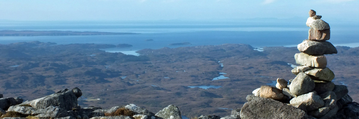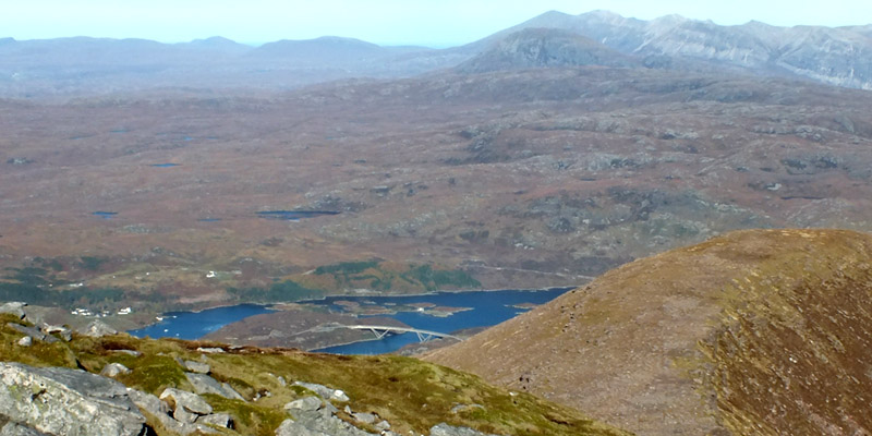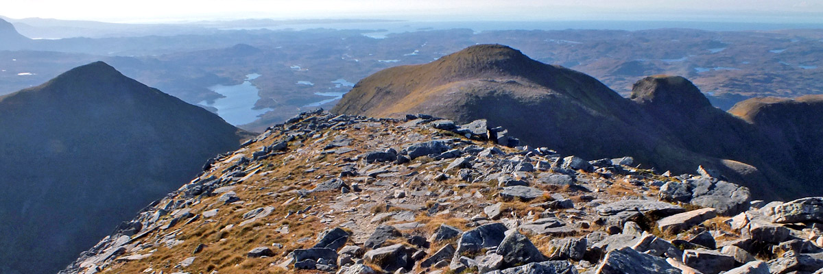 start up the side of Sàil Gharbh. Two hours or so after leaving Spidean Còinich, I'm on the highest summit of Quinag, enjoying the view over Kylesku, far