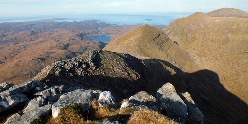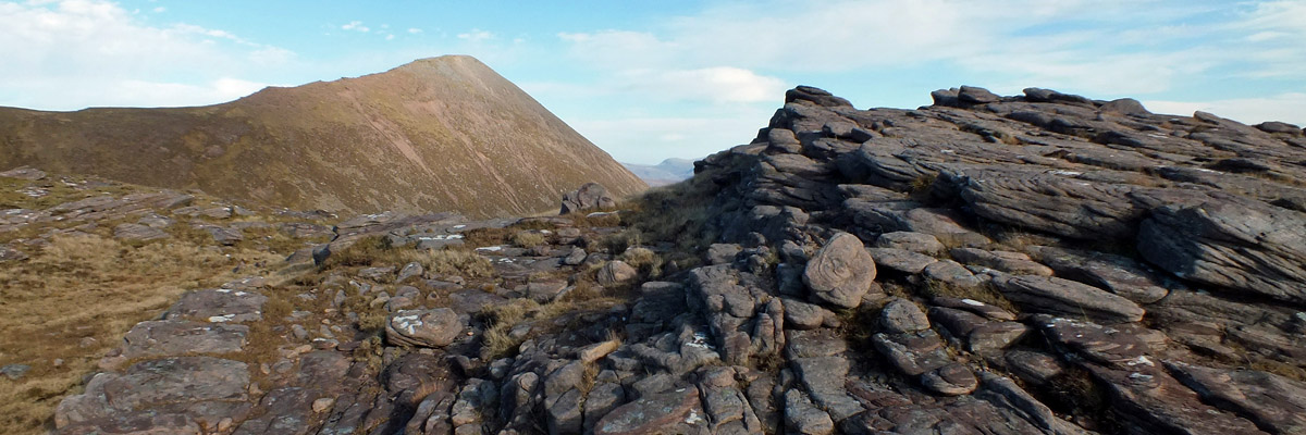 ascend either of those, or start the return trek along the lower ground. It's not yet noon, so Sàil Gharbh, at least, seems likely. Getting down to the