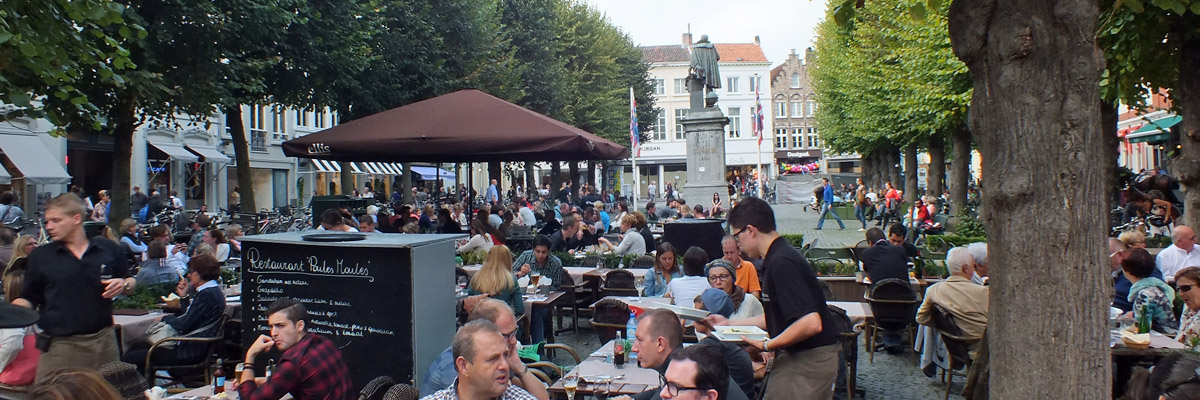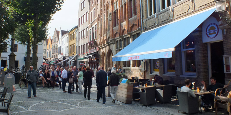 Saturday 27 September 2014--Belgium is a country of two parts: northern, industrial, Dutch-speaking Flanders; and southern, agrarian, French-speaking Wallonia. Bruges is the French name for the Flemish city the locals call Brugge, and for one reason or another (or maybe none), English speakers use the French name. I usually try to adhere to local custom in such things, but "Bruges" is too deeply ingrained. I am, however, well on guard against speaking French, the only language other than English in which I have any proficiency at all. My understanding is that some Flemings will take offense at the presumption that they speak French, and it's better to address them in English. Good thing, I guess, as the town is very popular with British tourists.