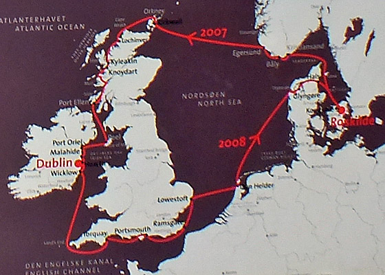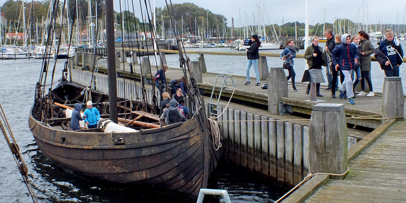 7 October 2015--The Viking Ship Museum in Roskilde, Denmark was established to conserve the remains of five Viking-era sailing vessels that were scuttled in Roskilde's fjord to help regulate the flow of traffic on the approach to the city, which was Denmark's capital before Copenhagen. The museum has since expanded its mission to building replicas of those five vessels and others that illustrate the history of sailing and boat-building in Scandinavia. The original five were built in different places and had various purposes--fishing, trading, raiding. Here is the Sea Stallion From Glendalough, a replica of a Viking longboat, intended for making war. Analysis of the original indicates that it was built in Dublin in the 11th century. In 2007, the Sea Stallion was sailed from Roskilde to Dublin, and returned the following year.