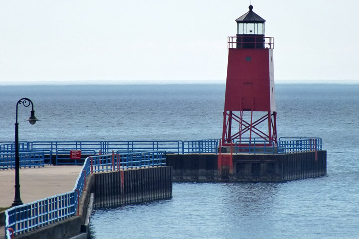 Tuesday 6 May 2025--Detroit from the Ambassador Bridge. I drive across the Mitten--the lower peninsula of Michigan--from southeast to northwest, to the town of Charlevoix, on Lake Michigan. As with most place names of French origin in the US (including Detroit), the pronunciation of Charlevoix has long ago been anglicized--the locals say "Sharlavoy". I'm staging for another morning ferry departure tomorrow. Next |