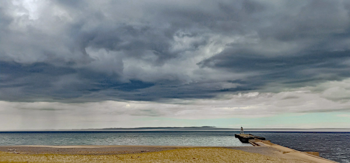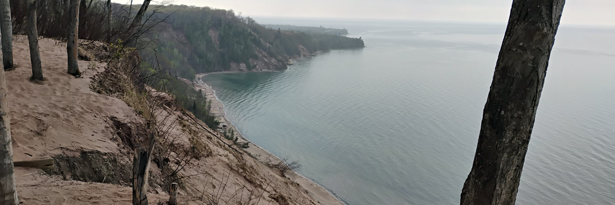 Wednesday 14 May 2025--My plan for today was to go to Munising and take a cruise along the Pictured Rocks National Lakeshore, but I have a tire issue, and spend a good part of the day dealing with it. I have time late in the day to take a short drive west along the lakeshore. At a scenic overlook, I can see down to the Au Sable Light Station. It's a very small taste of Michigan's Upper Peninsula. The first drafts of my itinerary included a lot more of it, cut for considerations of time and expense. Hopefully I'll have a chance to come back.