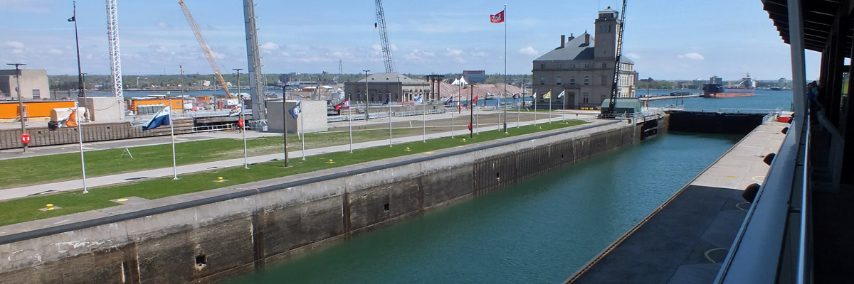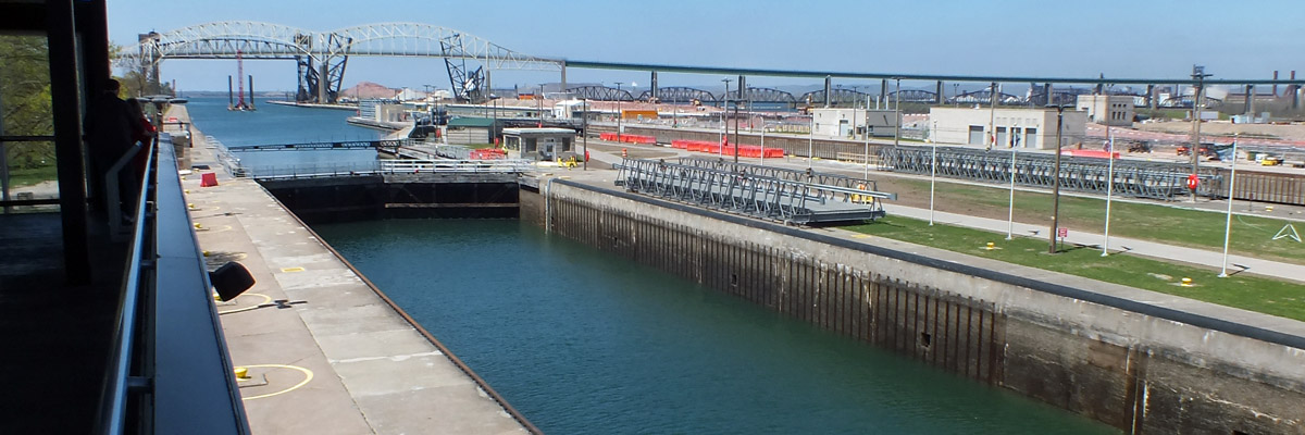 I stop to have a look at the Soo Locks before crossing the international bridge (seen here in the background) into Ontario again, on my way to St Joseph Island, where I'm staying two nights.