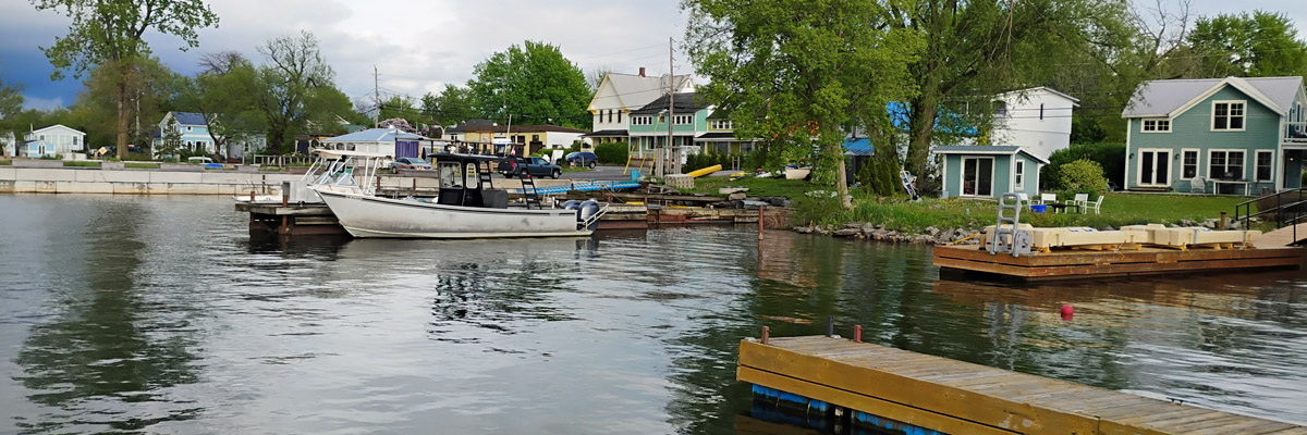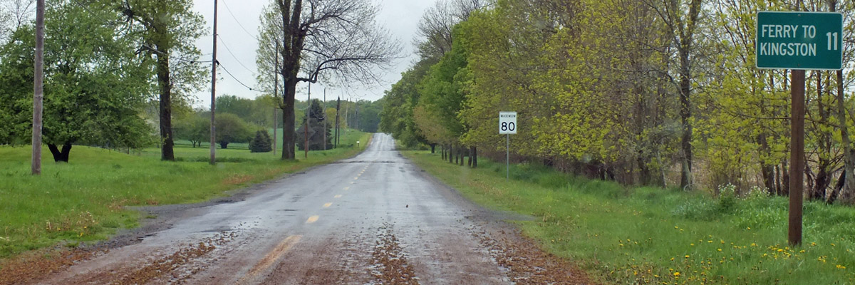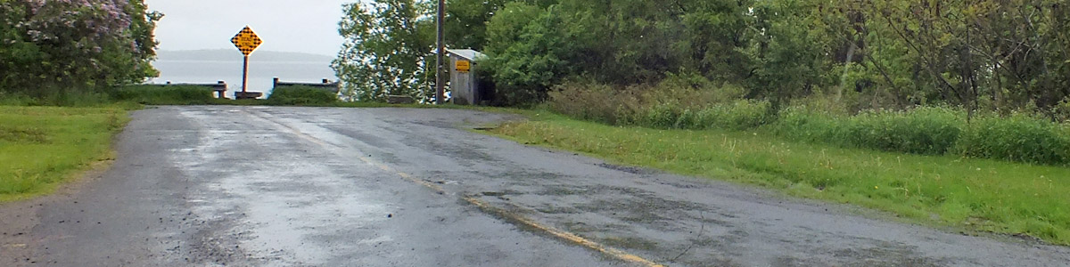 This is the landing for an international ferry that crosses the St Lawrence River to Cape Vincent, New York. I was hoping to start for home this way tomorrow, but it's not running for the season yet. It's a shoestring family business, and they've never been good about posting updates on their minimal web presence. [I find out later that they've gone out of business following the death of the family patriarch.]