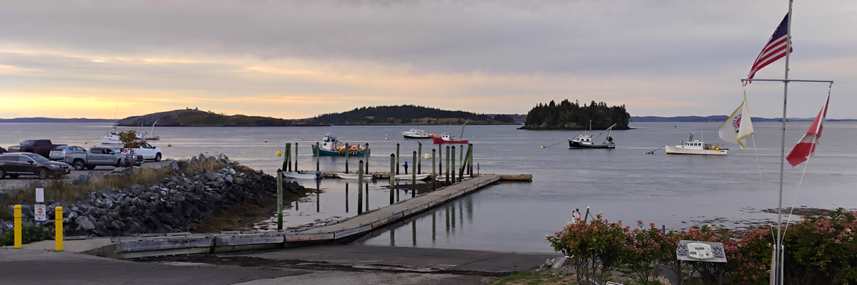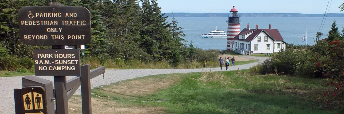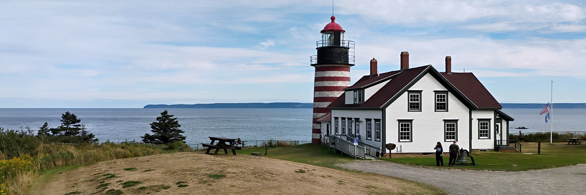 Our first night is in Lubec, Maine. After a last-chance diesel stop in Machias, we make a short diversion to see the lighthouse at West Quoddy Head. [As usual, lighthouse links are to Kraig Anderson's Lighthouse Friends.] It's well known that West Quoddy Head is the easternmost point in the contiguous 48 states. Less known is the fact that it's the closest point in the United States to Africa. The land we can see across the water is not Africa, but New Brunswick's Grand Manan Island, which I have never visited. We will be there tomorrow.