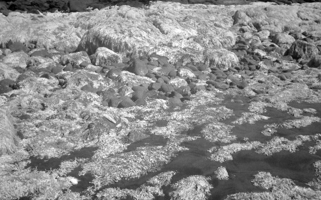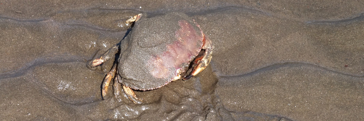 Seal Cove's beach is a lovely strand. We don't see any seals...we do see lots of crabs and crab parts, victims, I assume, of local gulls. I don't know why so many end up on the beach; I suppose it's because of the extreme tides. I have an eye out for the distinctive trapezoidal shells of European green crabs, an invasive species that appears to be in the process of conquering the world. All I see here are the native rock crabs. There are two wooden stairways that lead up to cottages atop the bluff. I looked at one of these while planning. It would be nice to be right over the beach, I guess, but I'm happy with the choice we made.