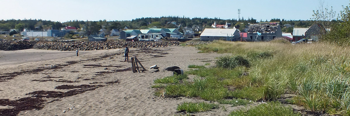 Tuesday 16 September 2025--Lazy morning...we stayed up a little too late last night, and maybe had a beer too many. Get out a bit late and walk down into the village, then out through the old smoke houses to the beach. Grand Manan was purportedly at one time the largest supplier of smoked herring in the world. A century ago, sheds like this dotted the whole eastern coast of the island. This is the best remaining concentration of them, now quietly decaying, the last of them having closed up just thirty years ago. It's a shame...it would make a nice little artist colony, or something. Grand Manan is too remote, I guess.