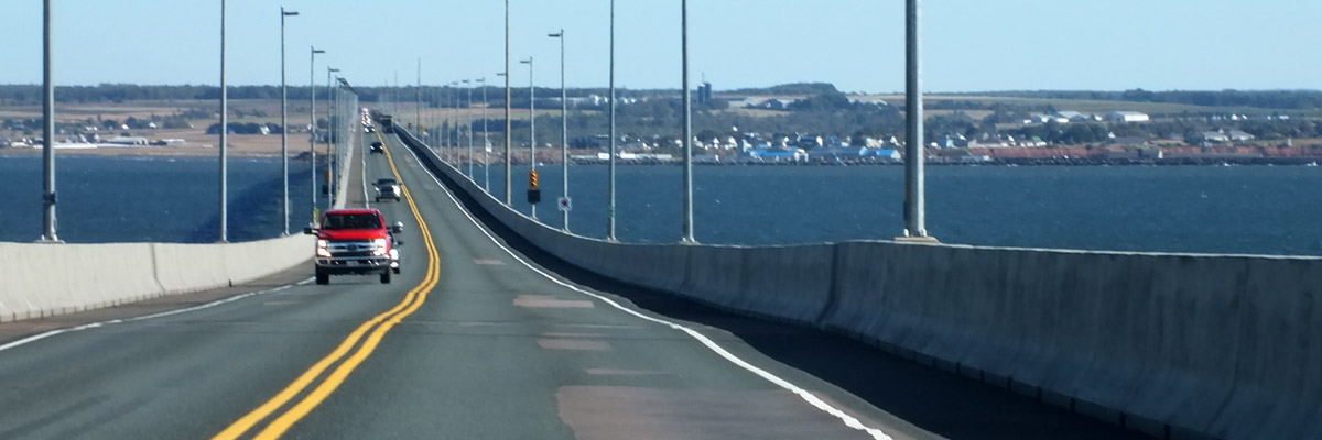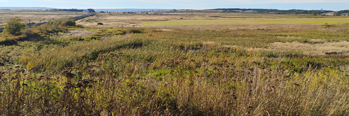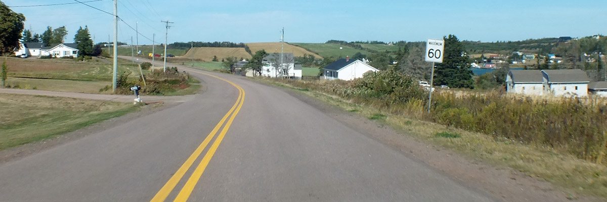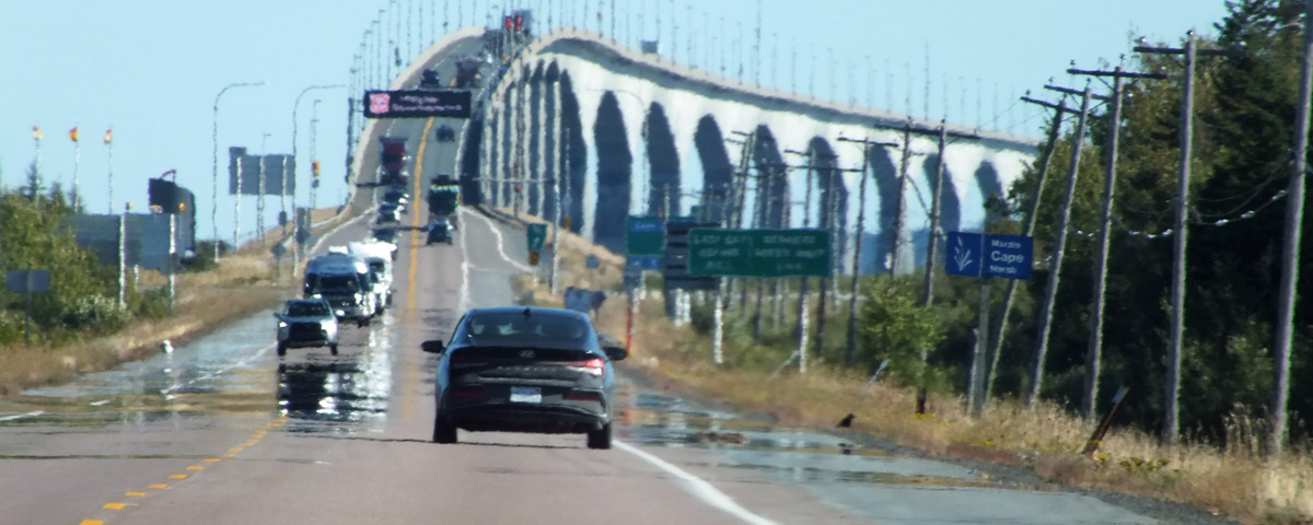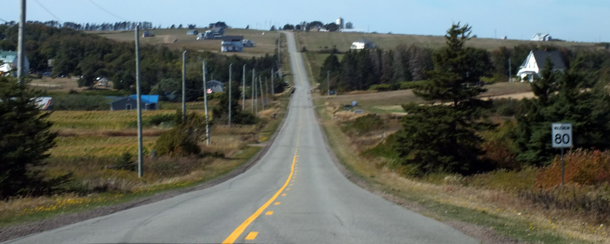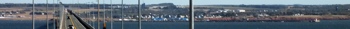 Monday 22 September 2025--A few days ago, Ron learned from a relative that one branch of his ancestry stretches back to a locality called Park Corner in Prince Edward Island. I had some other things in mind to do today, but Park Corner is less than two hours from Shediac, and the toll on the bridge has recently been reduced to twenty dollars (Canadian!), which makes a day trip reasonable; so off we go. I take the coastal road on the way to the bridge as much as possible, so we can soak in some local atmosphere. Acadian pride is evident in the village of Cap-Pelé, where the Acadian flag has been painted on anything and everything that it could be--garage doors, mailboxes, utility poles, rocks.