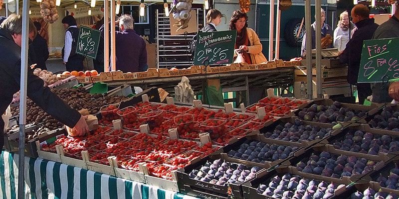 of produce, cheese, and the like, and it seems to me that most of the stallholders are French.