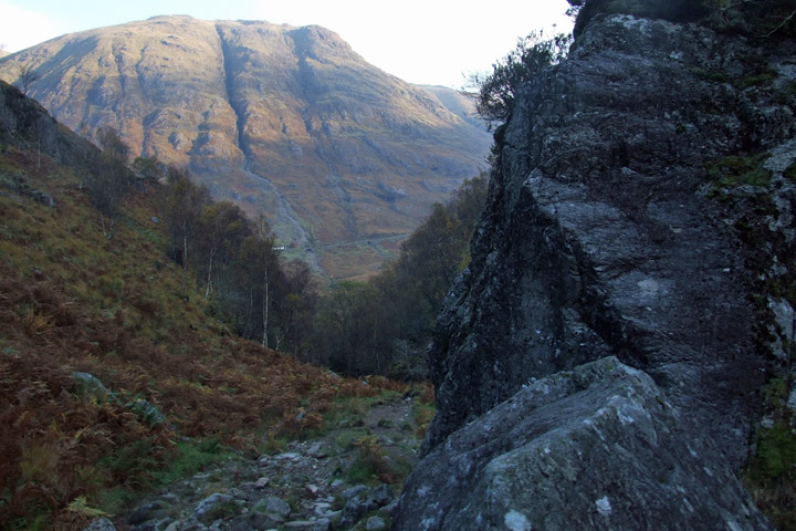 have plenty of time to compare notes. We cross the River Coe and ascend towards Coire Gabhail, the Lost Valley (or Hidden