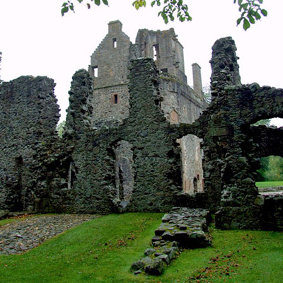 In Huntly, we find a coffee shop for java and sandwiches, then walk up toward the castle. I haven't been here before,