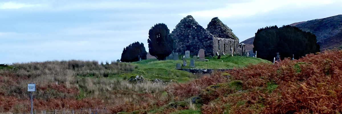Friday 18 October 2019--I've been to the deserted village of Boreraig, victim of the Highland Clearances, on the Isle of Skye before, but Ron hasn't. I think it's the most interesting of the cleared villages I've seen, so off we go. We waste the better part of an hour when I start us off on the wrong trail. Hmmm.