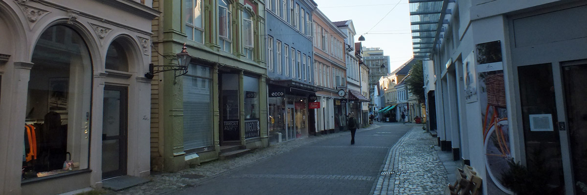 touristy commercial stretch along Strandgaten, followed by a not-very-charming