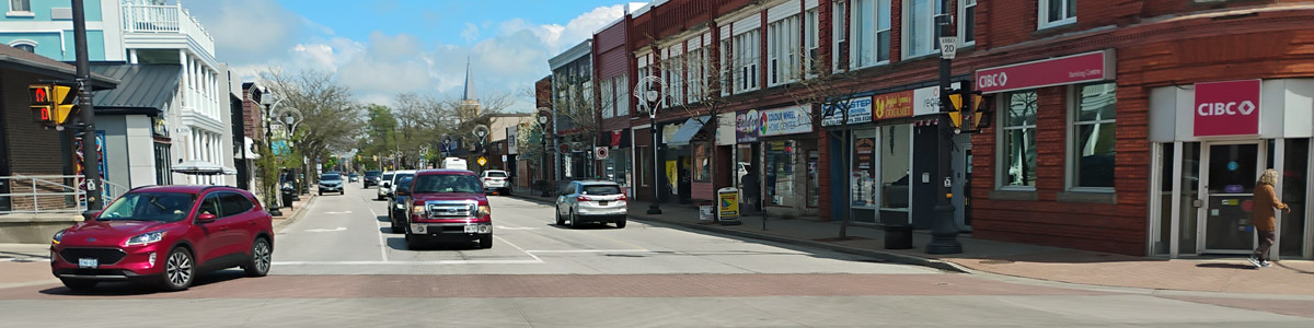 Monday 5 May 2025--Leaving Pelee Island in early morning fog. I needed a spot to lay over for a night, and in the end chose Kingsville, which isn't very far--I'll have a long drive tomorrow. I have time to take strolls around the downtowns of Leamington and Kingsville, neither of which is very big or very interesting.