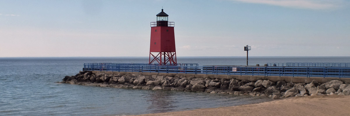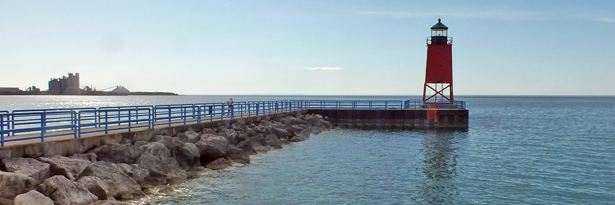 Tuesday 6 May 2025--Detroit from the Ambassador Bridge. I drive across the Mitten--the lower peninsula of Michigan--from southeast to northwest, to the town of Charlevoix, on Lake Michigan. As with most place names of French origin in the US (including Detroit), the pronunciation of Charlevoix has long ago been anglicized--the locals say "Sharlavoy". I'm staging for another morning ferry departure tomorrow. Next |