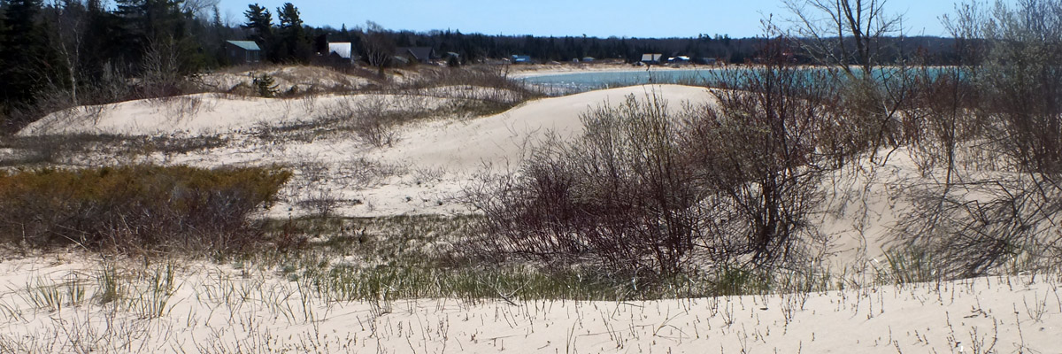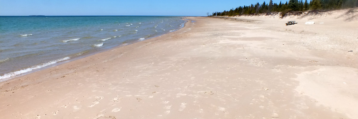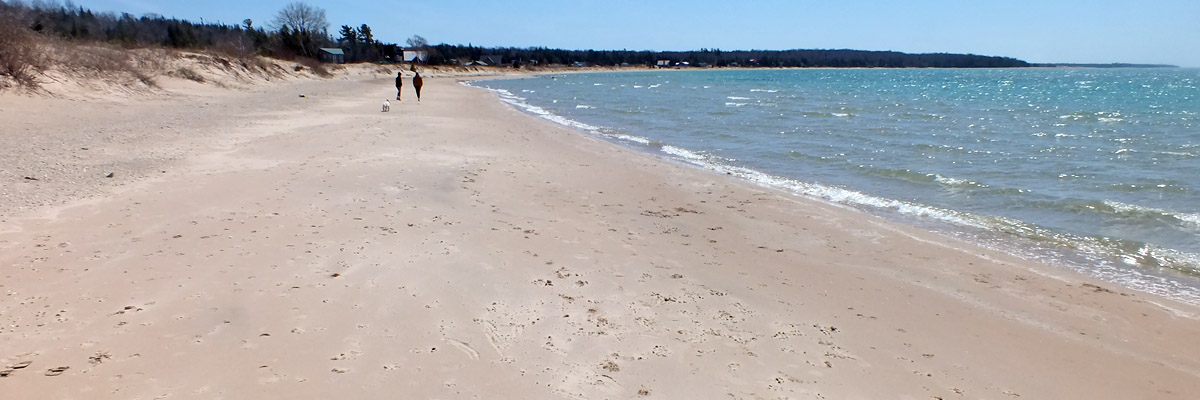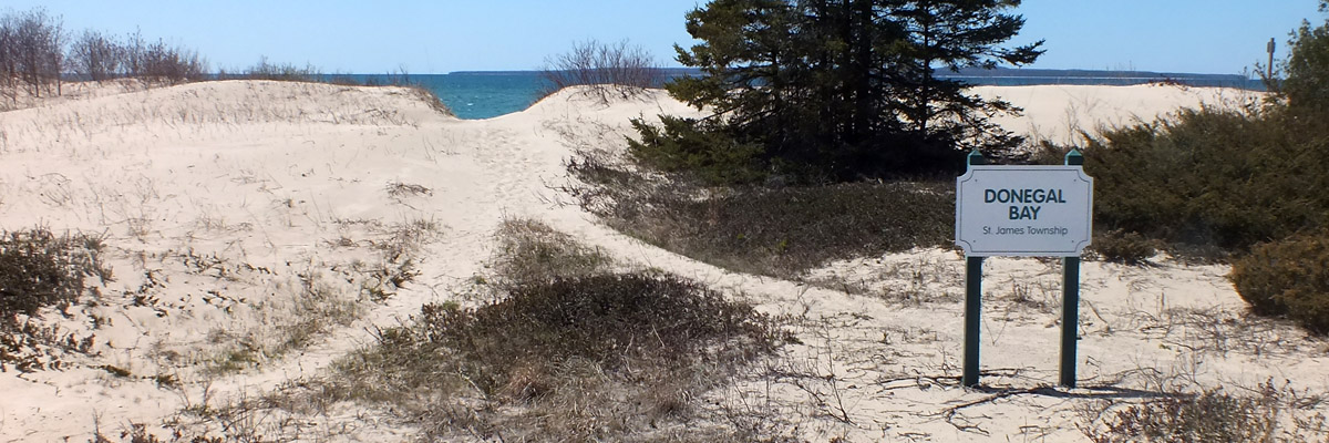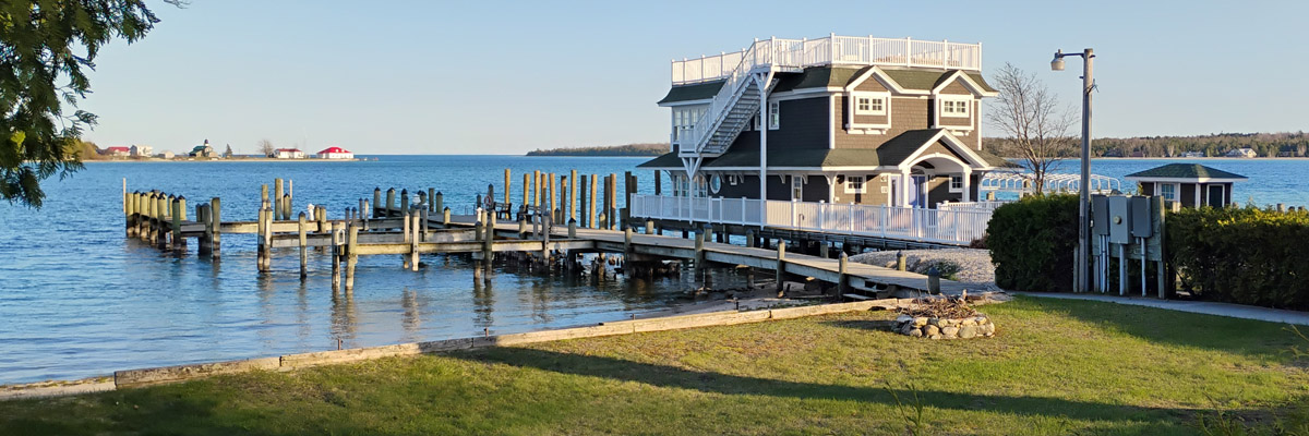Friday 9 May 2025--I saw most of the island yesterday; today I see what's left, including the beach at Donegal Bay. As that name might suggest, Irish immigrants were the major successors to the Mormons on Beaver Island. Later, I relax and enjoy a dram back at my room. I paid a little extra to get the one room at the motel with a patio, which affords me this view across the harbor.