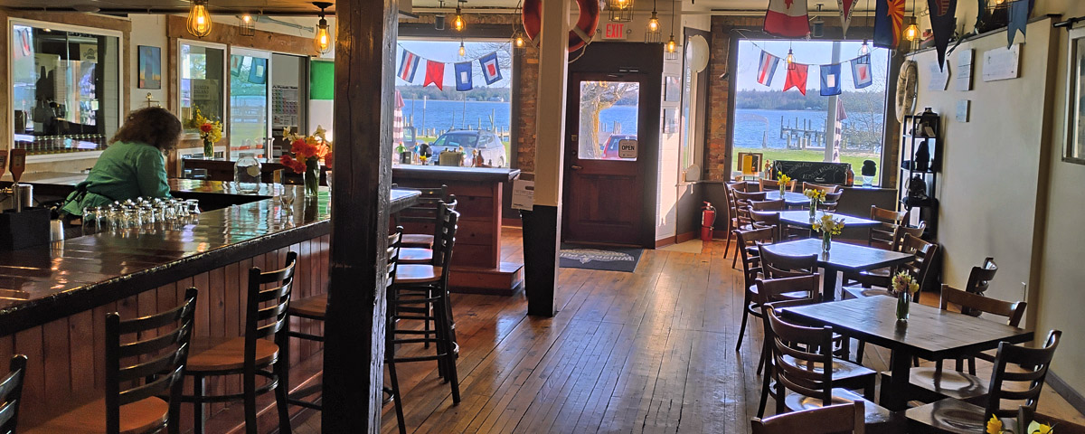 The taproom at the Whiskey Point Brewing Company keeps very short hours, 4-8pm Thursday to Sunday, which is too bad, as it's clearly the best place to have a pint on Beaver Island. The bartender, who I gather is one of the principals in the business, tells me they figure they sell as much beer in that time as they would if they were open all week from noon to midnight (and probably save themselves a lot of incidental trouble). I don't doubt it--despite the way it looks in this photo, taken as they were closing up, the place was very busy.