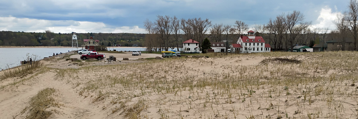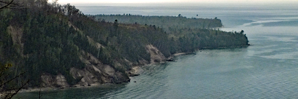 Wednesday 14 May 2025--My plan for today was to go to Munising and take a cruise along the Pictured Rocks National Lakeshore, but I have a tire issue, and spend a good part of the day dealing with it. I have time late in the day to take a short drive west along the lakeshore. At a scenic overlook, I can see down to the Au Sable Light Station. It's a very small taste of Michigan's Upper Peninsula. The first drafts of my itinerary included a lot more of it, cut for considerations of time and expense. Hopefully I'll have a chance to come back.
