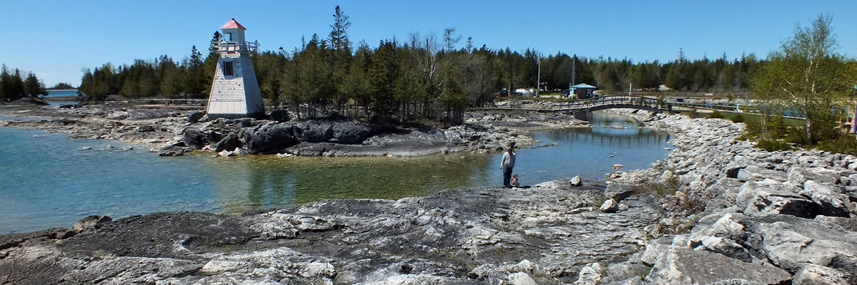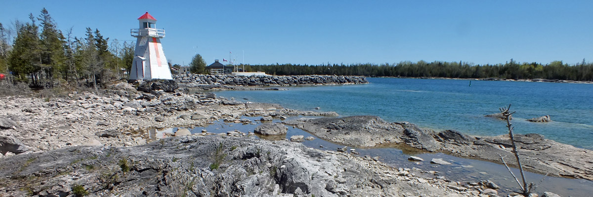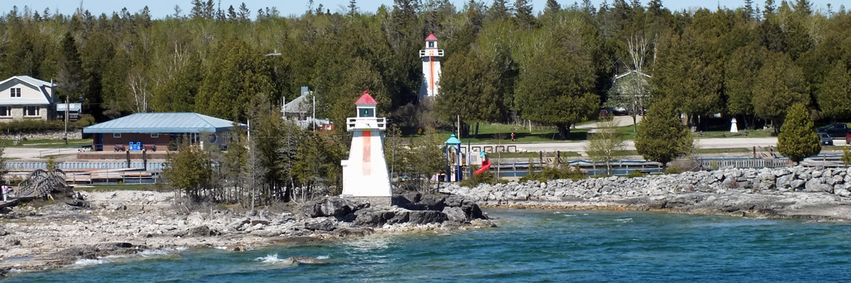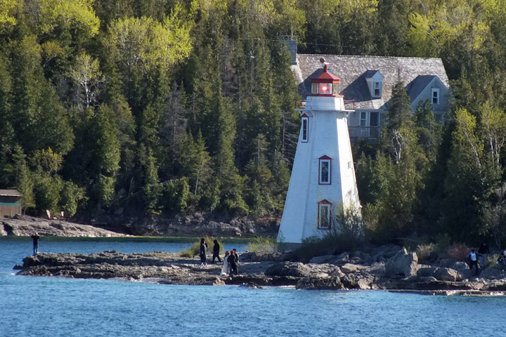 On the way into Tobermory, there is a good view of the Big Tub Light. There are two harbors here; the townsite surrounds Little Tub Harbor. Big Tub Harbor is lined by to-die-for summer cottages.