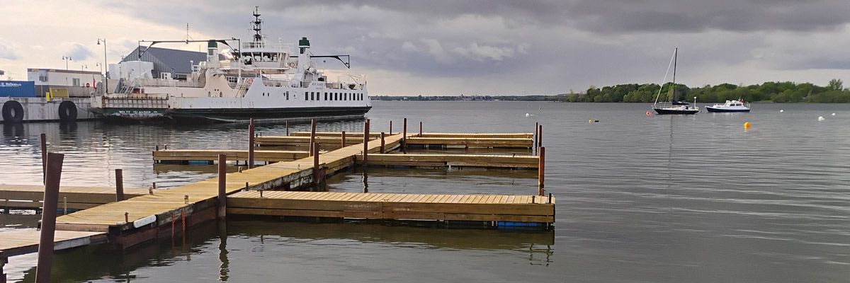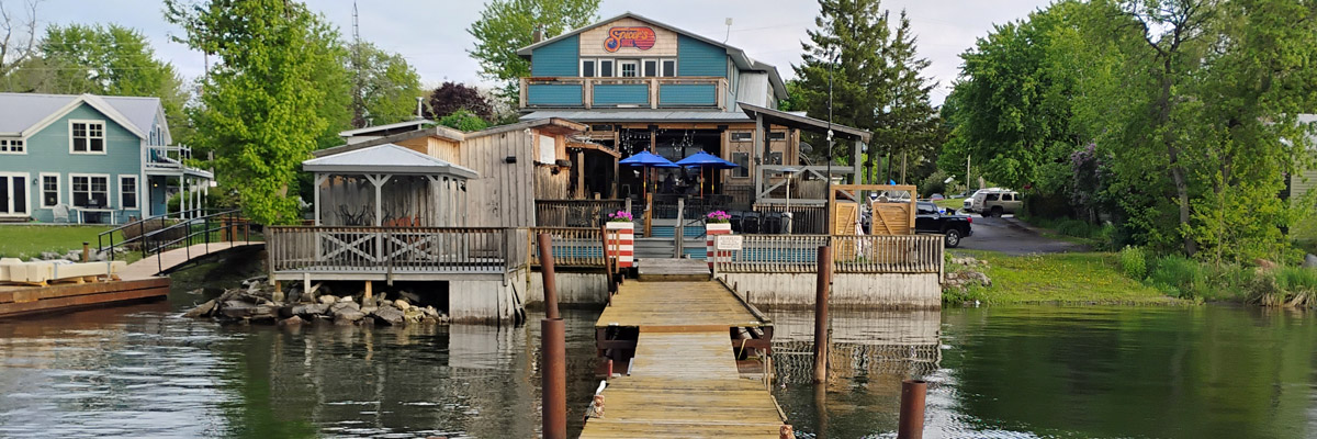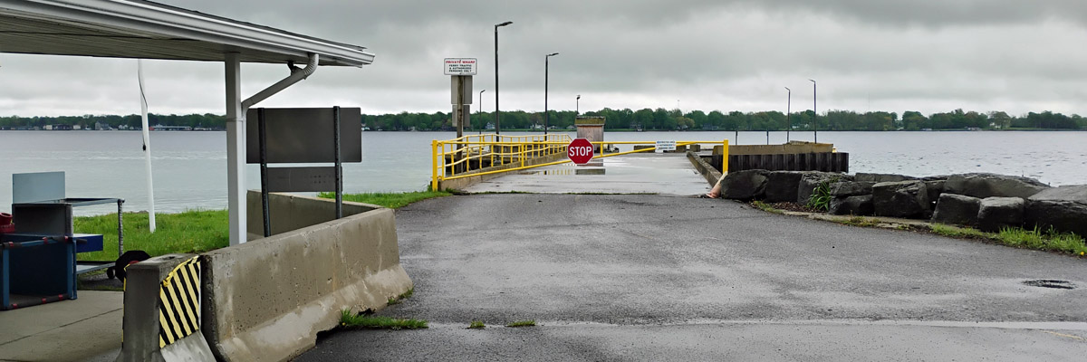 This is the landing for an international ferry that crosses the St Lawrence River to Cape Vincent, New York. I was hoping to start for home this way tomorrow, but it's not running for the season yet. It's a shoestring family business, and they've never been good about posting updates on their minimal web presence. [I find out later that they've gone out of business following the death of the family patriarch.]