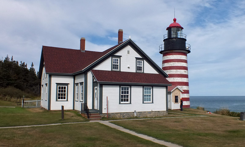 Our first night is in Lubec, Maine. After a last-chance diesel stop in Machias, we make a short diversion to see the lighthouse at West Quoddy Head. [As usual, lighthouse links are to Kraig Anderson's Lighthouse Friends.] It's well known that West Quoddy Head is the easternmost point in the contiguous 48 states. Less known is the fact that it's the closest point in the United States to Africa. The land we can see across the water is not Africa, but New Brunswick's Grand Manan Island, which I have never visited. We will be there tomorrow.