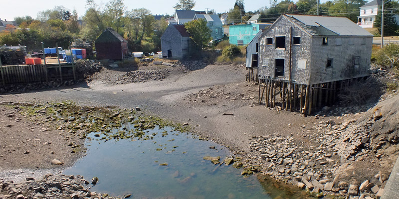 Tuesday 16 September 2025--Lazy morning...we stayed up a little too late last night, and maybe had a beer too many. Get out a bit late and walk down into the village, then out through the old smoke houses to the beach. Grand Manan was purportedly at one time the largest supplier of smoked herring in the world. A century ago, sheds like this dotted the whole eastern coast of the island. This is the best remaining concentration of them, now quietly decaying, the last of them having closed up just thirty years ago. It's a shame...it would make a nice little artist colony, or something. Grand Manan is too remote, I guess.