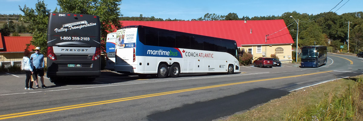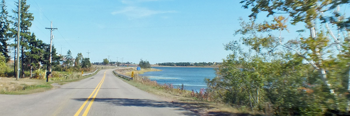 Monday 22 September 2025--A few days ago, Ron learned from a relative that one branch of his ancestry stretches back to a locality called Park Corner in Prince Edward Island. I had some other things in mind to do today, but Park Corner is less than two hours from Shediac, and the toll on the bridge has recently been reduced to twenty dollars (Canadian!), which makes a day trip reasonable; so off we go. I take the coastal road on the way to the bridge as much as possible, so we can soak in some local atmosphere. Acadian pride is evident in the village of Cap-Pelé, where the Acadian flag has been painted on anything and everything that it could be--garage doors, mailboxes, utility poles, rocks.
