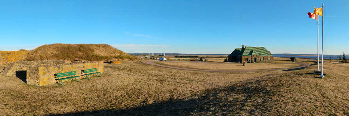 We cross back over the bridge and make a speed tour of Mr Tattie Heid heritage sites: Bayfield Cemetery, Baie Verte, Beaubassin, Fort Beauséjour. [See 9-11 September 2012 and 18 May 2022.] Recently unearthed information indicates that my ancestor, Benjamin Allen, was buried on his own property, and his marker later moved to its current site at the cemetery in Baie Verte. I have no idea where his property was, except that it's somewhere nearby.
