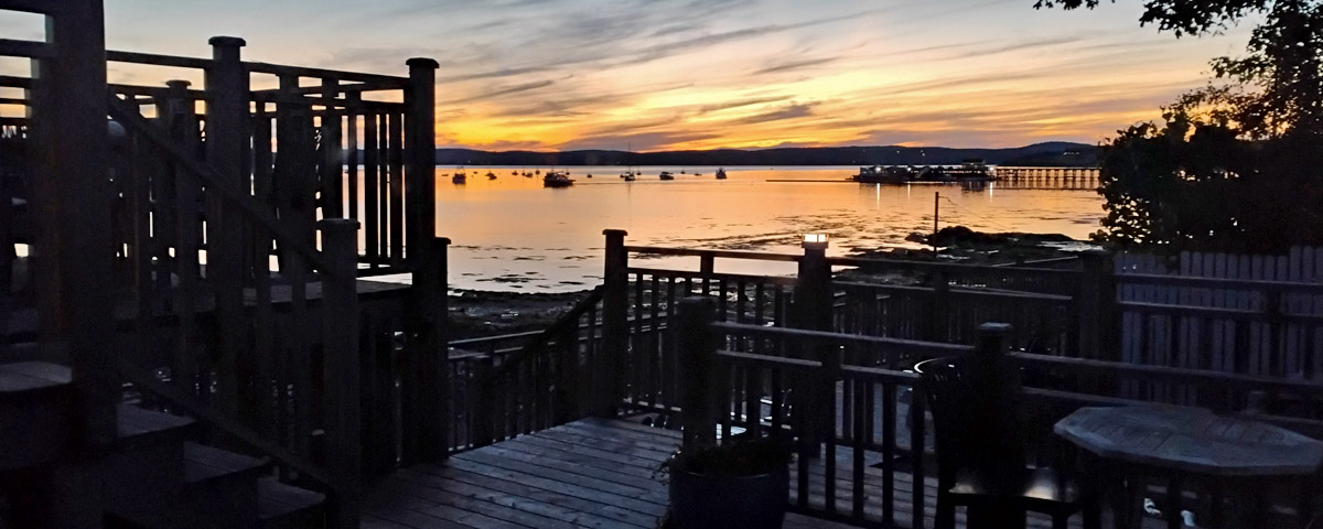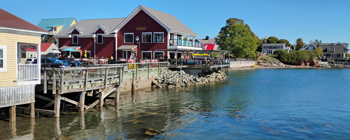 Dinner this evening is at the Gables, another restaurant with a waterfront patio. I don't know why I've never been in that one before...maybe just because it's up the other end of town. To be clear, it's a block and a half past St Andrews Brewing. We have a pint at the latter, and then retire to our own patio to watch the falling tide and the fading light on the bay, on our last evening on the road.